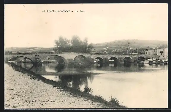 AK Pont-sur-Yonne, Le Pont sur la rivière avec vue sur le village et les collines environnantes