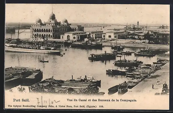 AK Port-Said, Vue du Canal et des Bureaux de la Compagnie