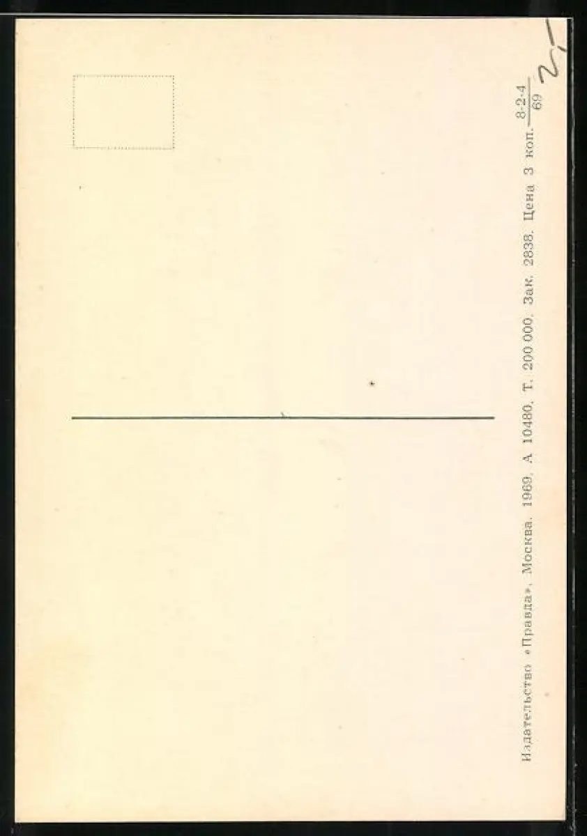 Personenbezogene Daten auf der Rückseite der Karte wurden durch blauen Textmarker unkenntlich gemacht. Die blauen Stellen sind auf die Vorderseite durchgeweicht und wirken sich negativ auf das Postkartenfoto aus