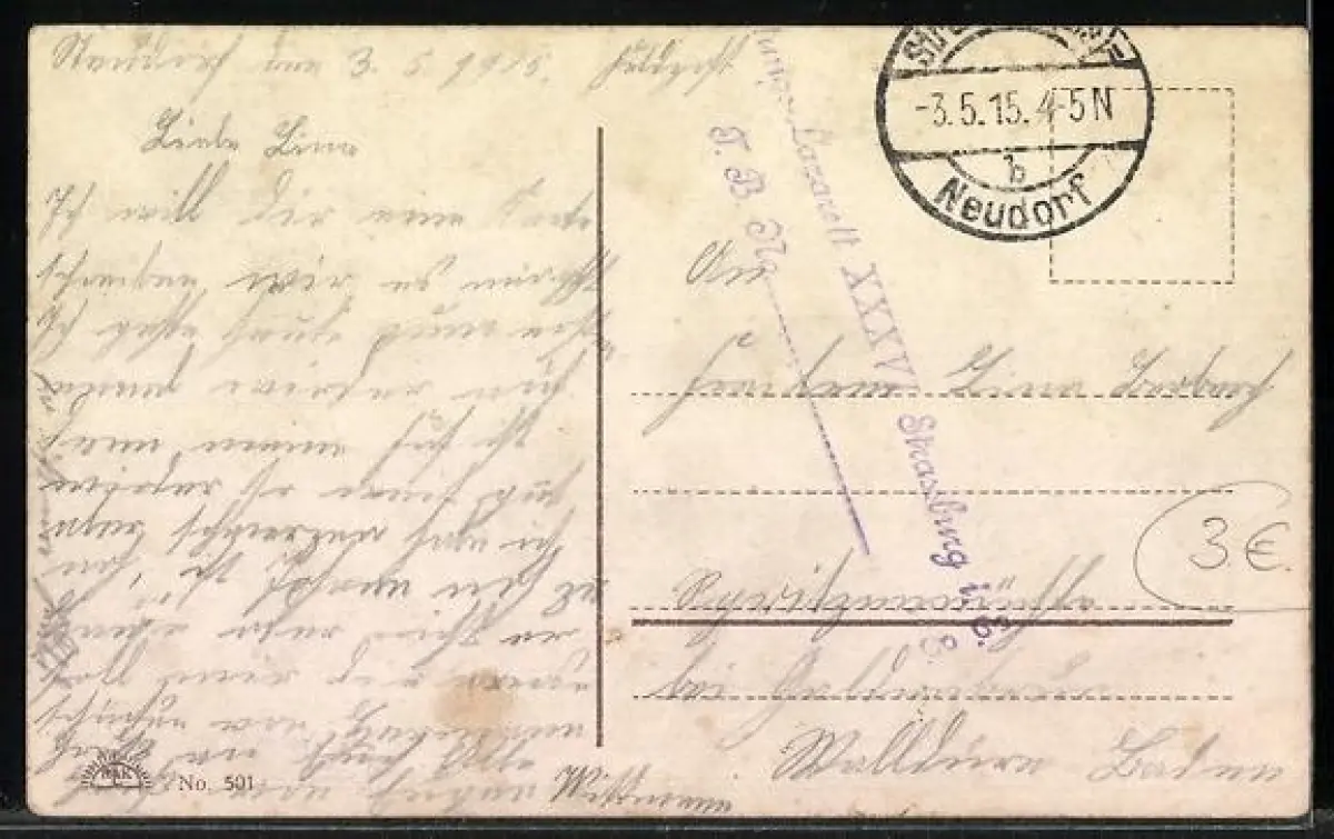 alte Ansichtskarte, gelaufen 1915, Eckknick li. oben, guter Zustand