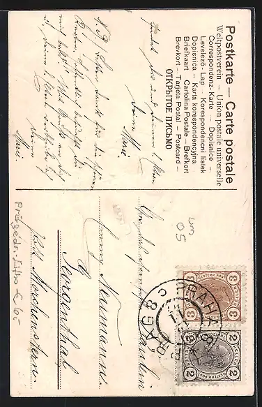 alte Ansichtskarte, gelaufen 1907, Eckknick li. unten, guter Zustand