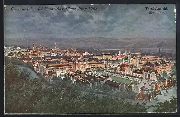 AK Prag, Jubiläums-Ausstellung 1908, Total-Ansicht