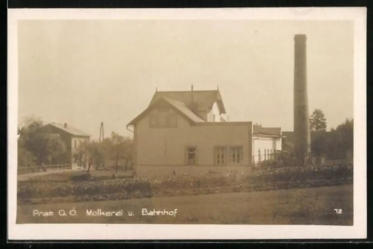 AK Pram /Ö. O., Molkerei und Bahnhof