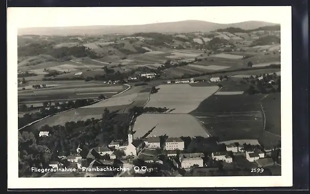 AK Prambachkirchen /O. Ö., Teilansicht mit Kirche, Fliegeraufnahme