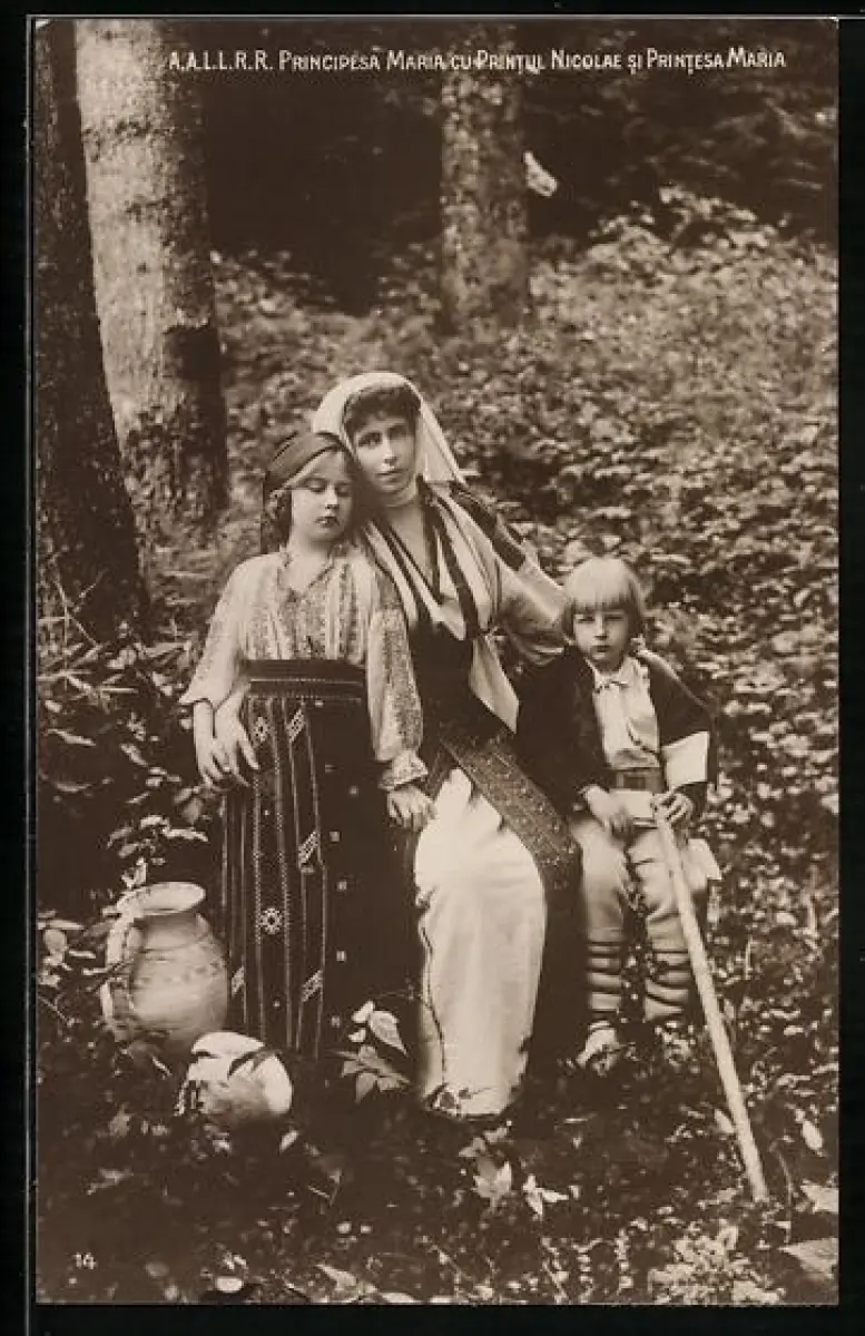 AK Principesa Maria cu Printul Nicolae si Printesa Maria, Maria von Rumänien mit Kindern