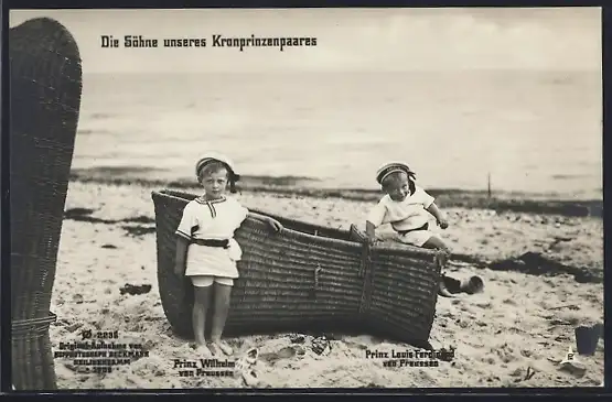 AK Prinz Louis Ferdinand und Prinz Wilhelm am Strand