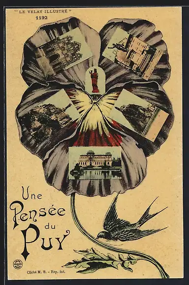 AK Puy, Blumengruss, Kirche, Denkmal in Stiefmütterchen