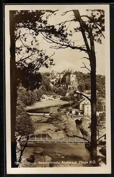 AK Raabs a. d. Thaya, Uferpartie mit Schloss und Brücke