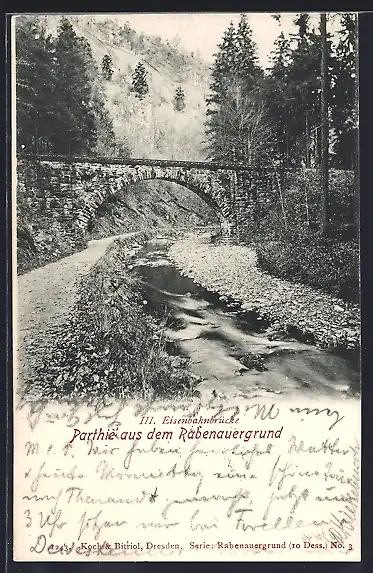 AK Rabenau, Partie aus dem Rabenauergrund mit Eisenbahnbrücke