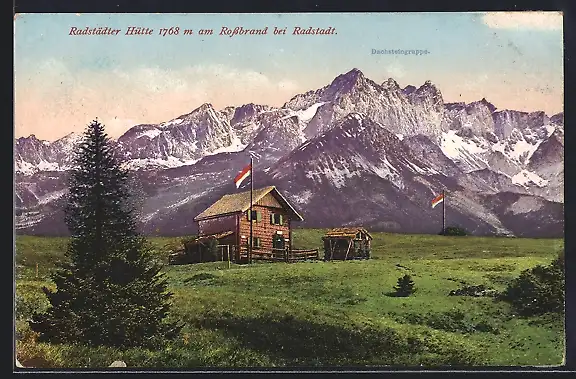AK Radstädter Hütte, Berghütte am Rossbrand bei Radstadt mit Dachsteingruppe