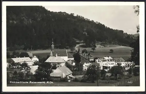 AK Raisenmarkt /N. Oe., Ortsansicht mit Berglandschaft