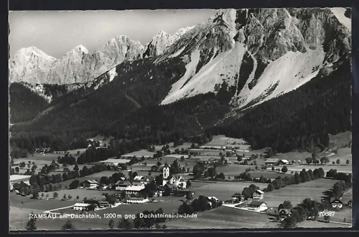 AK Ramsau am Dachstein, Teilansicht gegen Dachsteinsüdwände