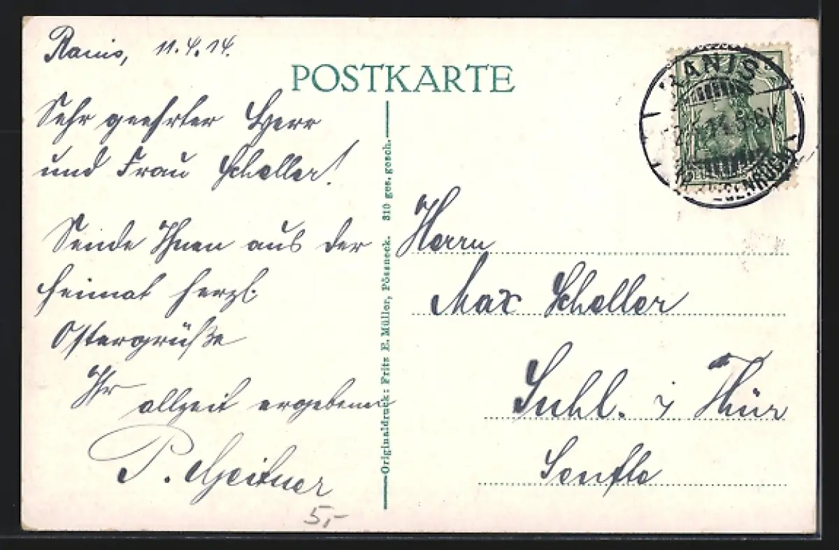 alte Ansichtskarte, gelaufen 1914, Stempelspur, guter Zustand