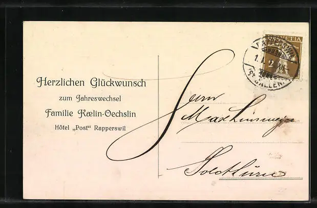 AK Rapperswil, Hotel Restaurant Post - Strassenansicht