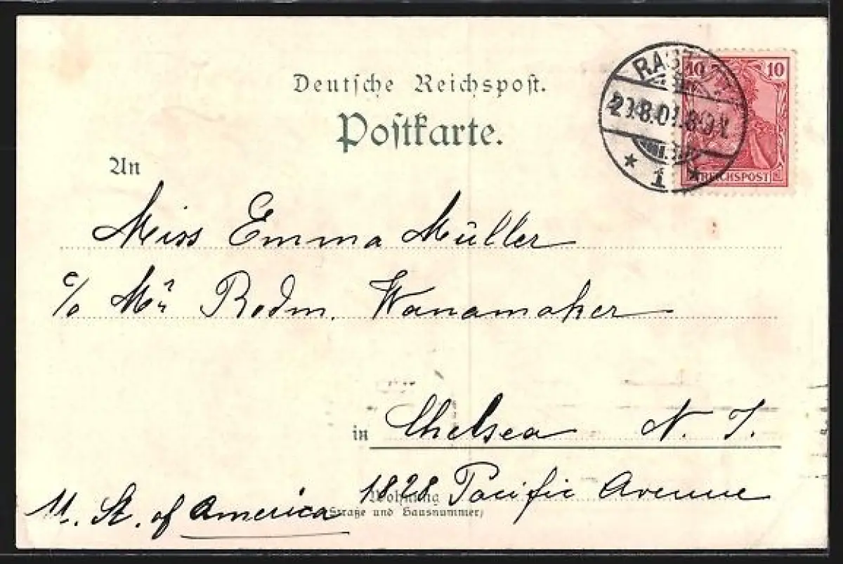 gelaufen 1901, Stempelspur, Eckknick unten links, rückseitig Oberflächenschaden, guter Zustand