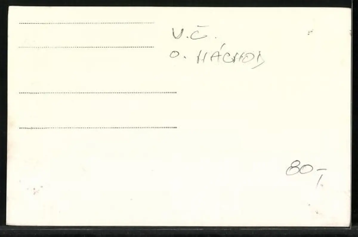 Personenbezogene Daten auf der Rückseite der Karte wurden durch blauen Textmarker unkenntlich gemacht. Die blauen Stellen sind auf die Vorderseite durchgeweicht und wirken sich negativ auf das Postkartenfoto aus