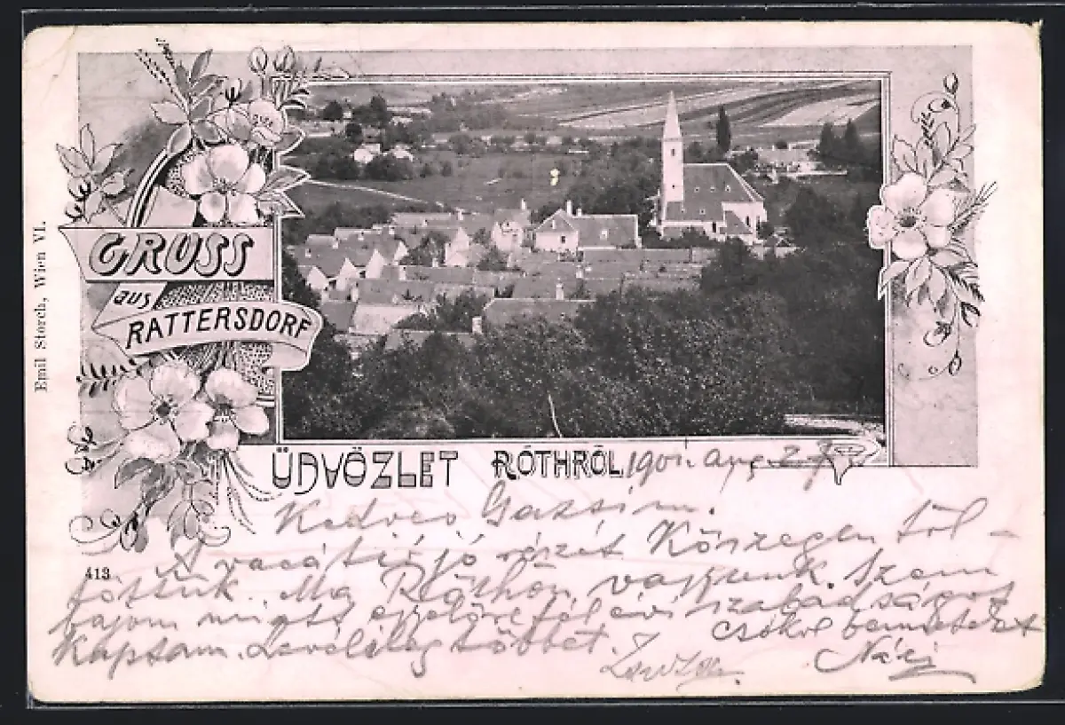 AK Rattersdorf, Teilansicht mit Kirche, Passepartout