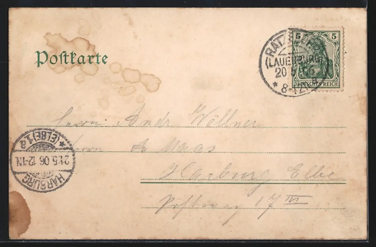 alte Ansichtskarte, gelaufen 1906, Eckknick re. oben, leicht fleckig, guter Zustand