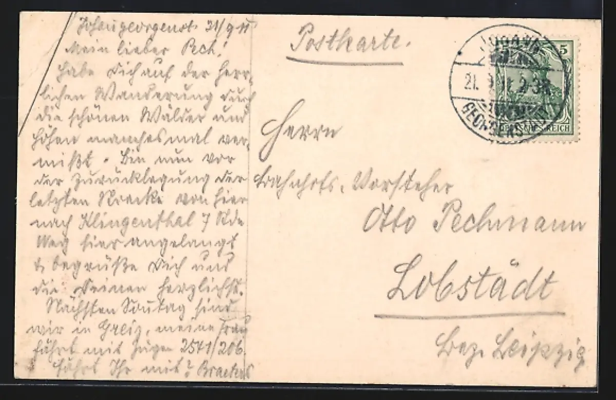 alte Ansichtskarte, gelaufen 1911, Eckknick oben re., guter Zustand