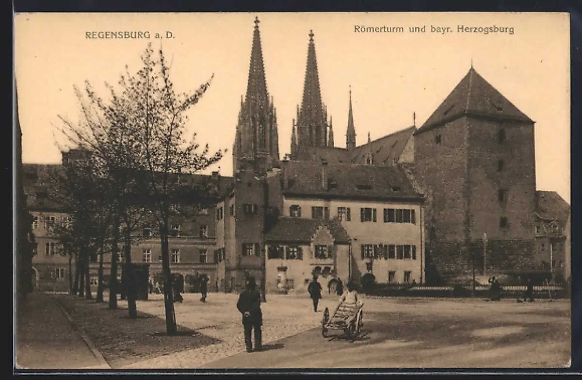 AK Regensburg, Römerturm und bayr. Herzogsburg
