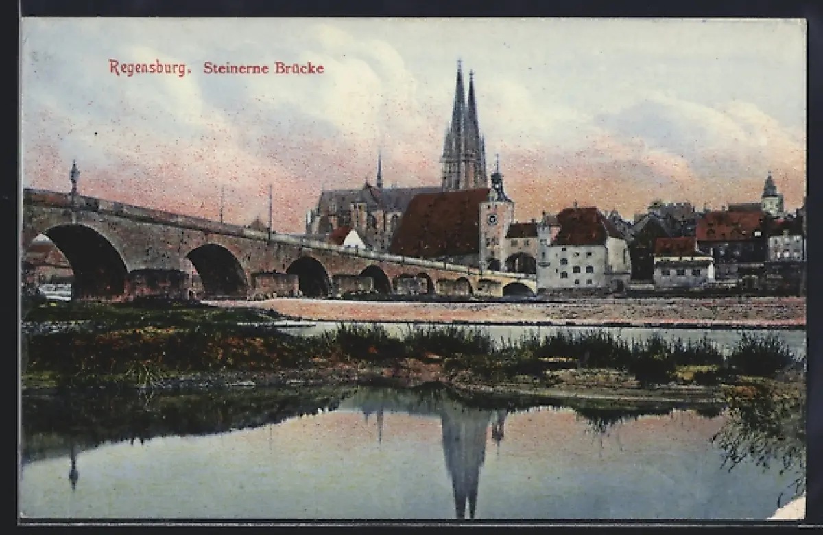 AK Regensburg, Steinerne Brücke mit Kirche