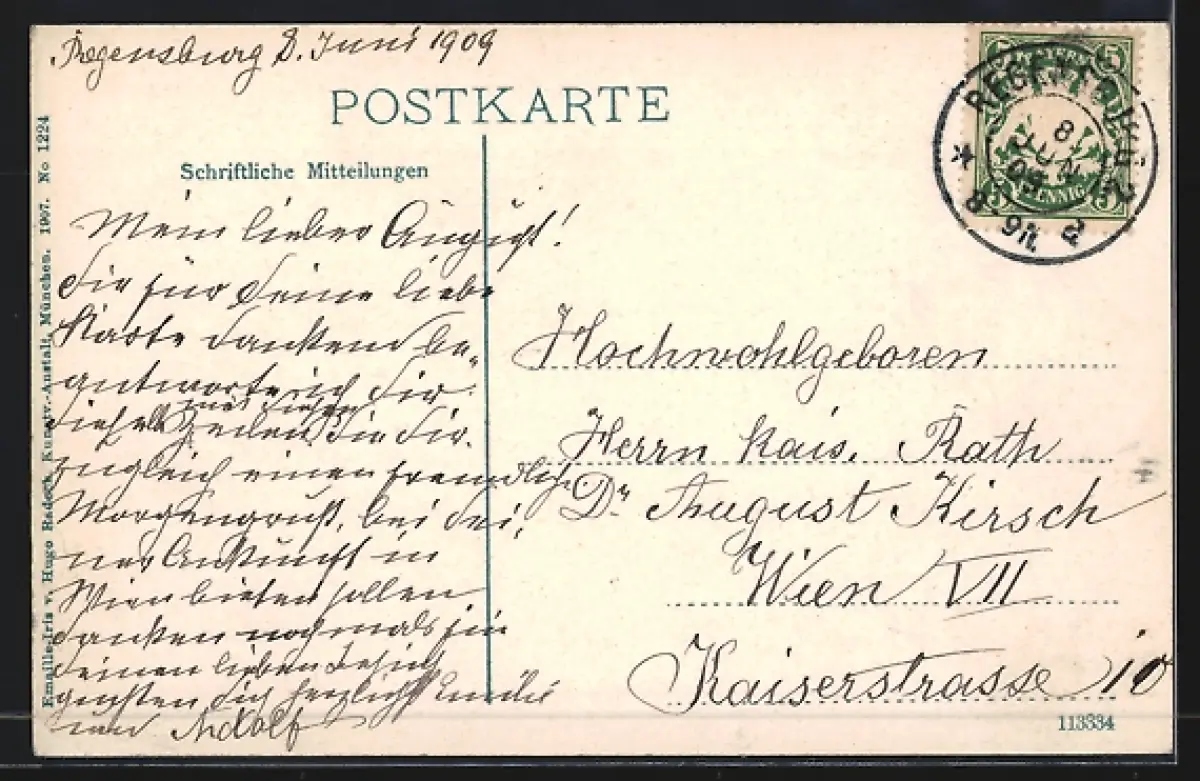 alte Ansichtskarte, gelaufen 1909, Abriebspur re. unten, Bugspur re. unten, guter Zustand