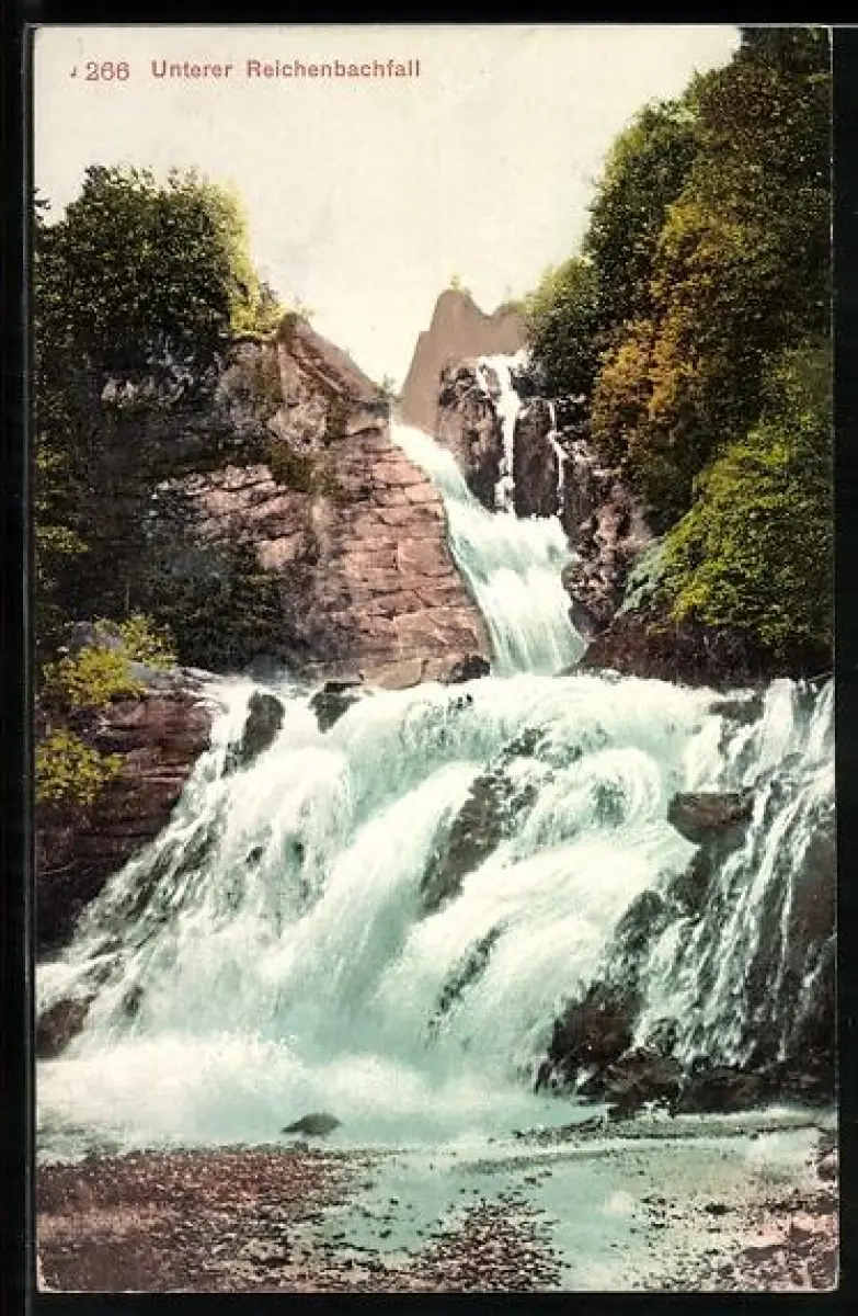 AK Reichenbachfall, Unterer Wasserfall mit anliegenden Bäumen