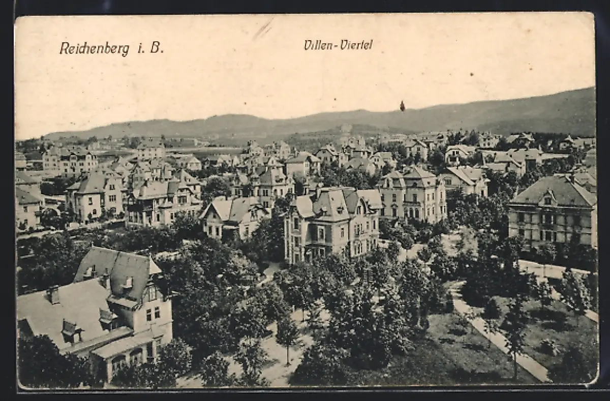 AK Reichenberg / Liberec, Villen Viertel aus der Vogelschau