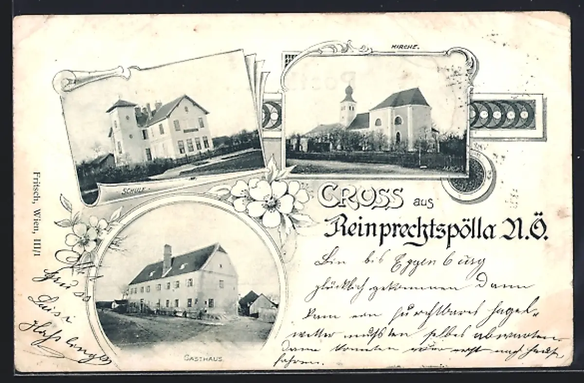 AK Reinprechtspölla /N. Ö., Gasthaus, Kirche, Schule