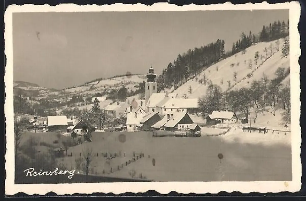 AK Reinsberg, Teilansicht mit Kirche im Schnee