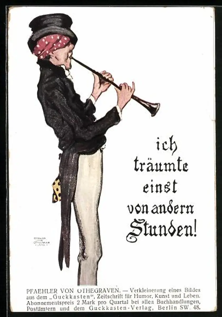 AK Reklame Zeitschrift Guckkasten, Flötenspieler