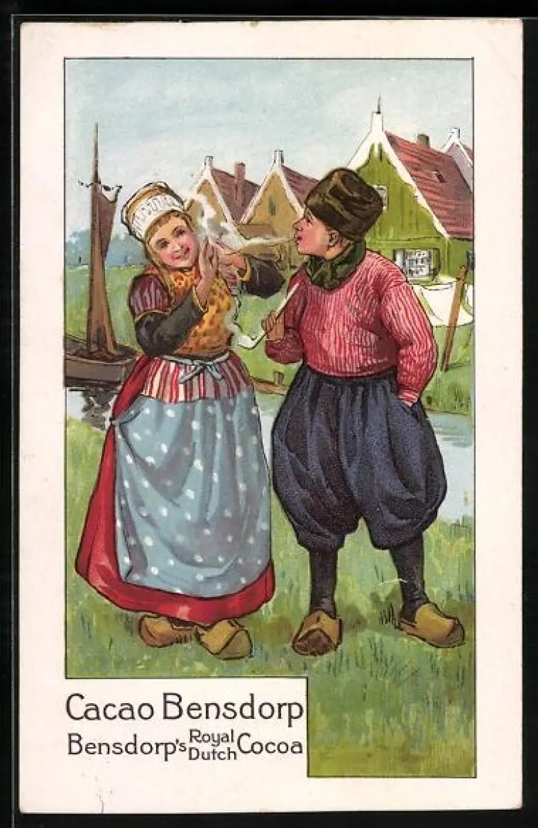 AK Reklame für Cacao et Chocolat Bensdorp, Paar in Holzschuhen