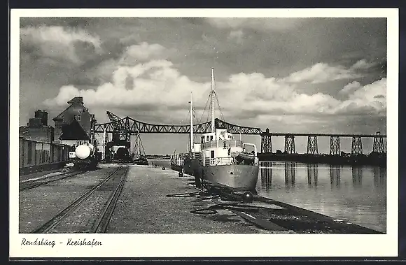 AK Rendsburg, Kreishafen, Schiff an der Anlegestelle