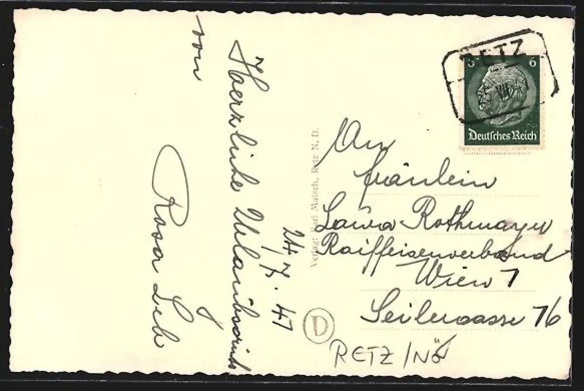 AK Retz /N. Ö., Totalansicht des Ortes mit Umgebung