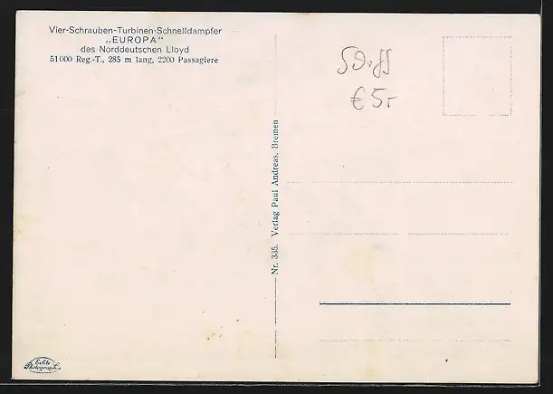AK Riesendampfer Europa des Norddeutschen Lloyd