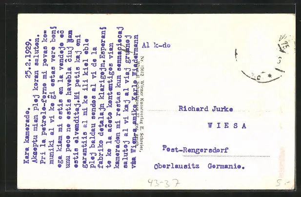 gelaufen 1929, Briefmarke entfernt, rückseitig Oberflächenschaden, sonst guter Zustand