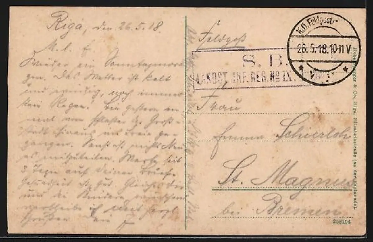 alte Ansichtskarte, gelaufen 1918 als Feldpost, Bugspur links oben, guter Zustand