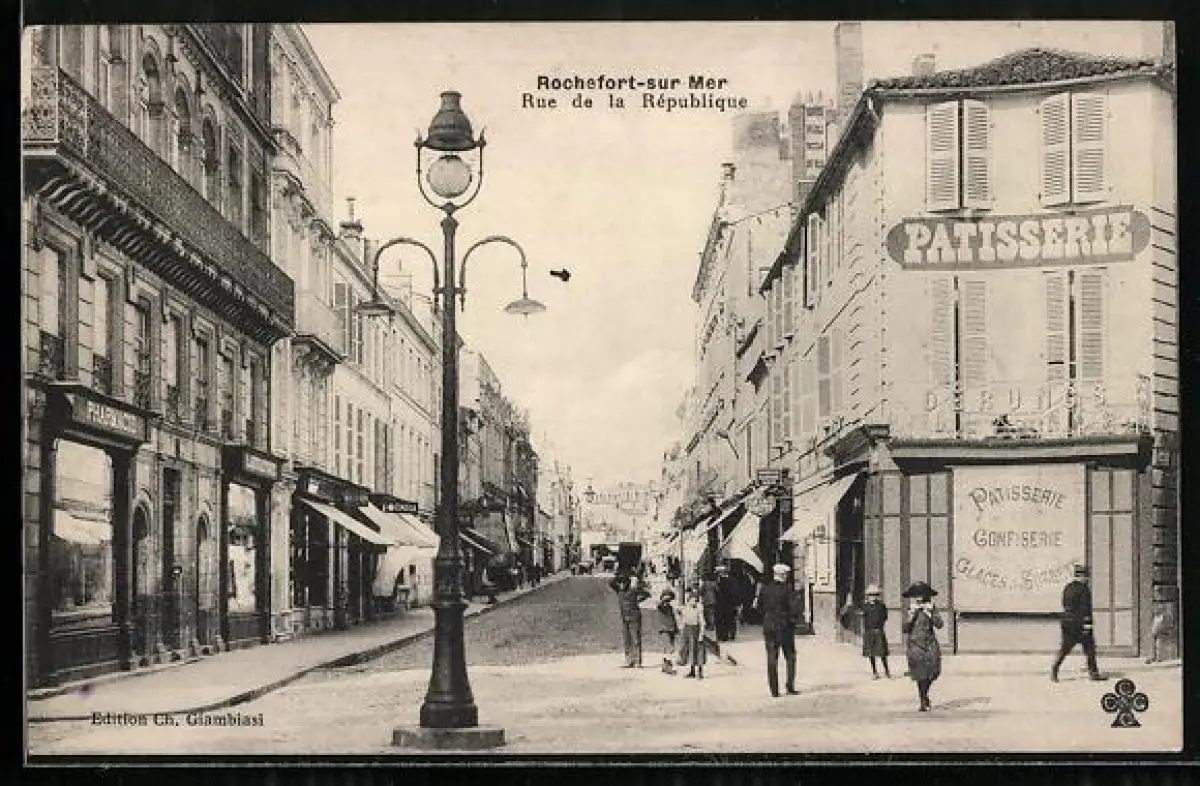 AK Rochefort-sur-Mer, Rue de la République avec passants et commerces