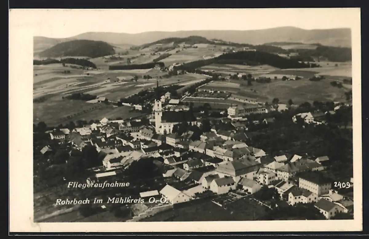 AK Rohrbach im Mühlkreis, Totalansicht vom Flugzeug aus