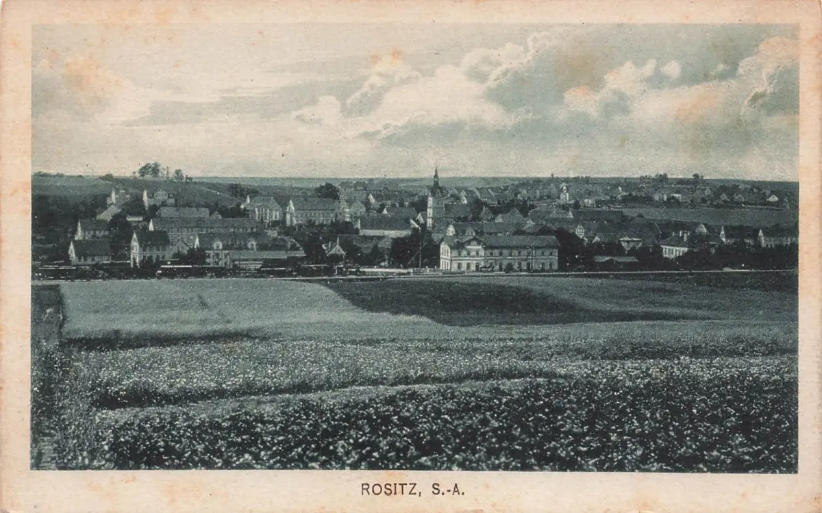 AK Rositz Stadtansicht Kirche Häuser Thüringen ungelaufen Postkarte