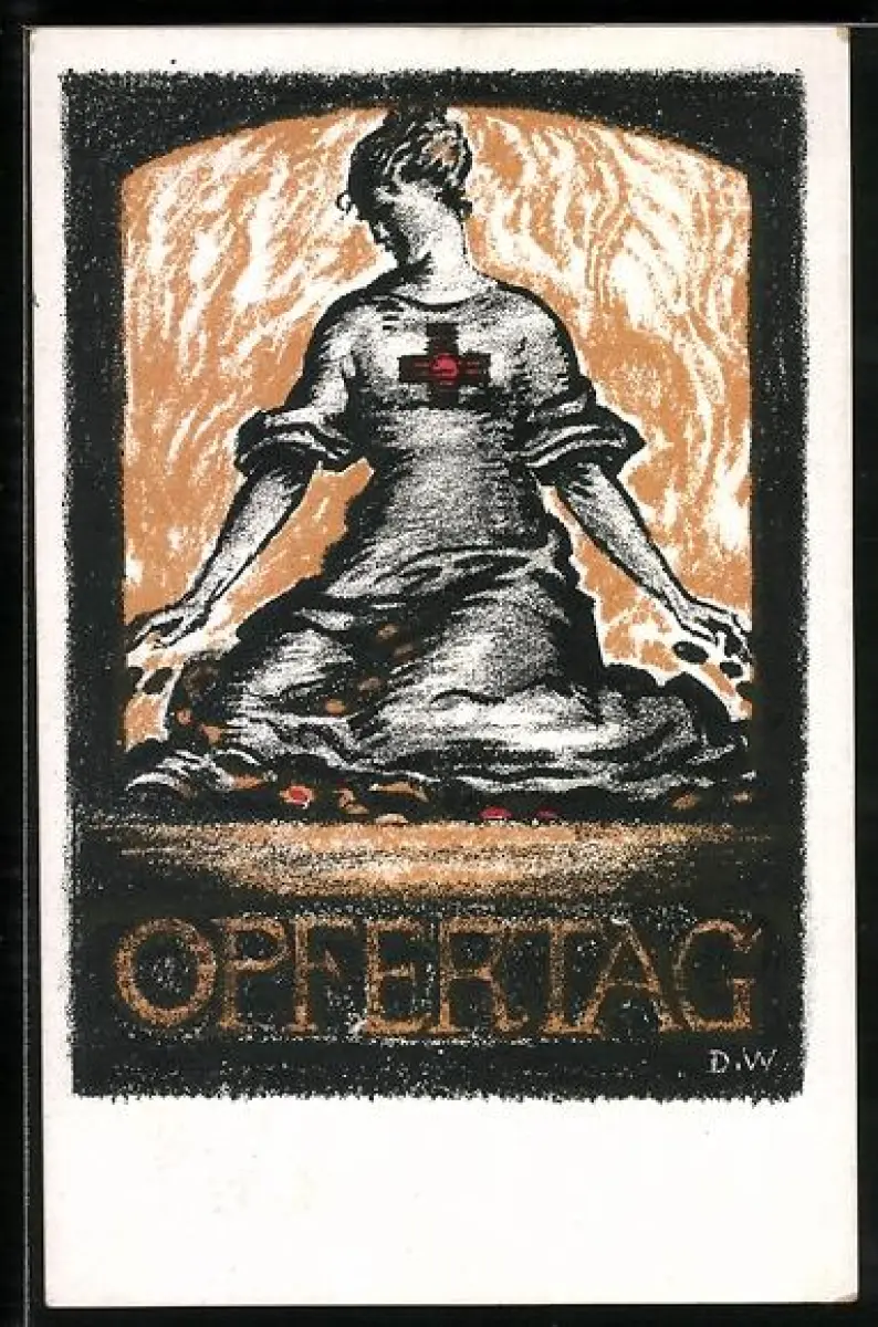 AK Rotes Kreuz, Kniende Frau, Opfertag