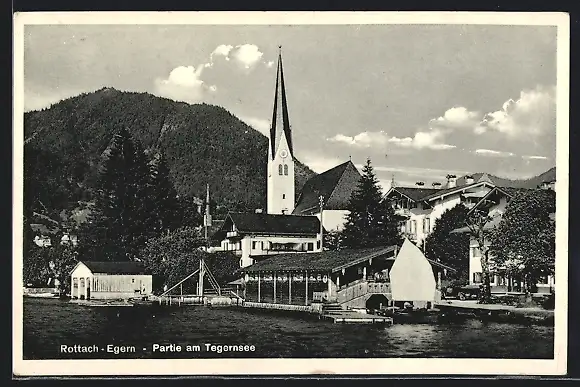 AK Rottach-Egern, Kirche und Partie am Tegernsee
