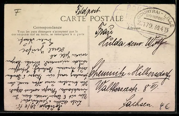 alte Ansichtskarte, gelaufen 1915, Abriebspur unten rechts, guter Zustand