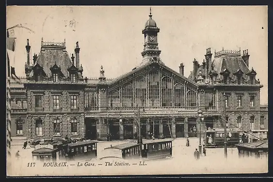 AK Roubaix, La Gare, Strassenbahn