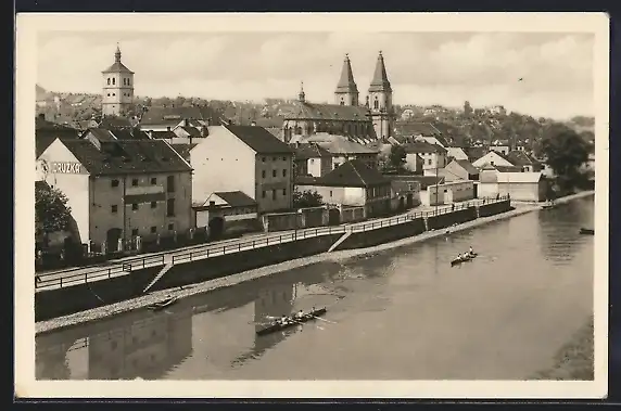 AK Roudnice nad Labem, Partie an der Elbe mit Ruderbooten