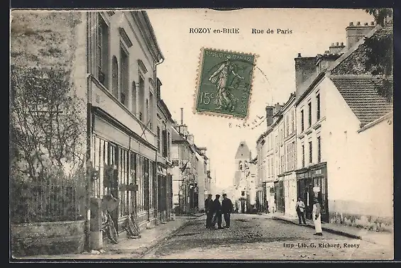 AK Rozoy-en-Brie, Rue de Paris animée avec passants et boutiques