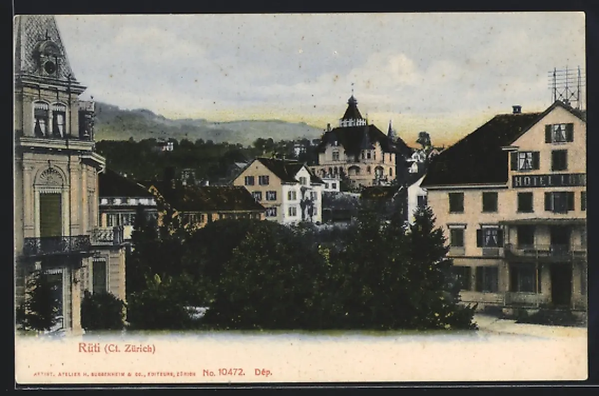 AK Rüti / ZH, Ortspartie mit Hotel Löwen