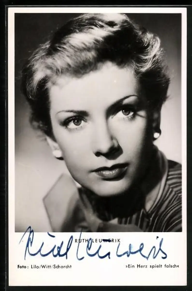 AK Ruth Leuwerik mit Kurzhaarfrisur, Autograph