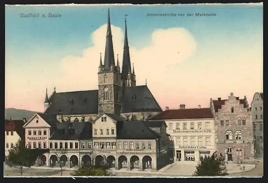 AK Saalfeld /Saale, Johanneskirche von der Marktseite