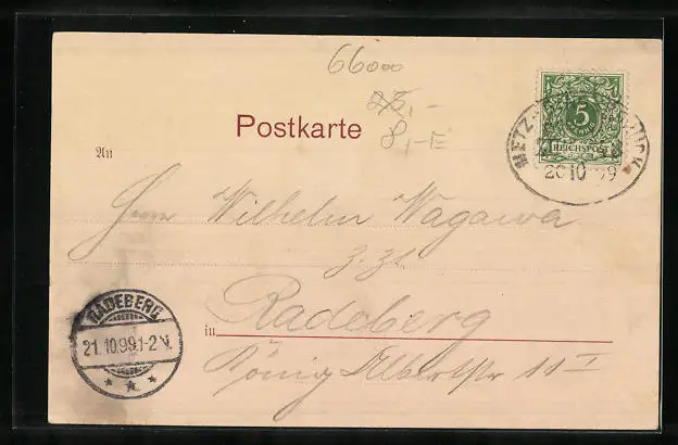 alte Ansichtskarte, gelaufen 1899, guter Zustand